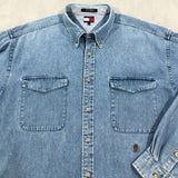 Vintage Tommy Hilfiger Denim Shirt Lion Crest Logo (XL/BIG-2XL)